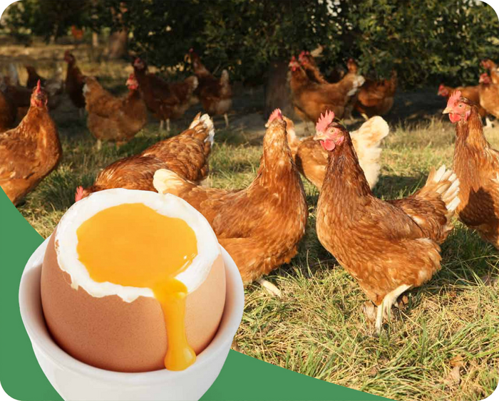At FARMER BROWN we ensure better taste and quality by farming with care. Our hens thrive on a wholesome diet of natural grains, plant proteins, and essential nutrients.
